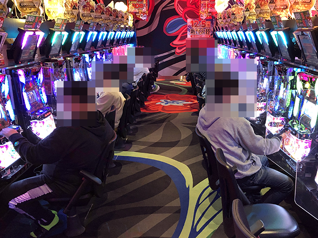 ほぼ満席となっていた「パチスロ甲鉄城のカバネリ」も活況!! 楽しそうに遊技をおこなう姿が2人、3人と続いていたんだ。
