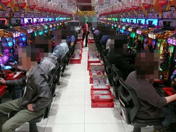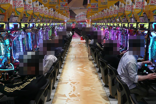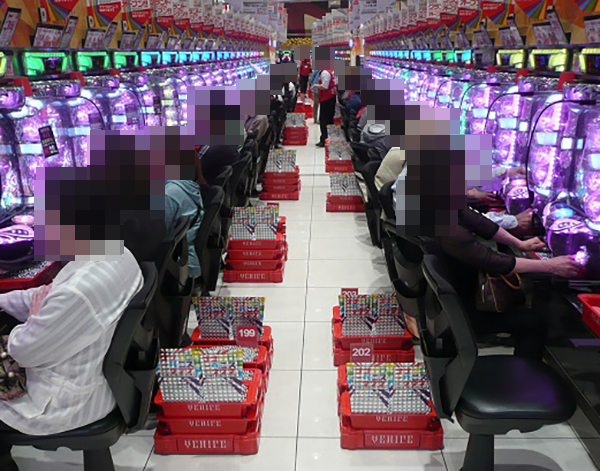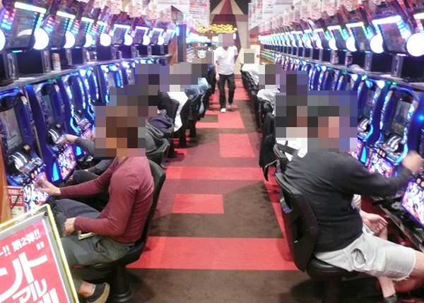 とくに1円パチンコの海物語シリーズが人気となっており、空席がs少ない状態となっていた。