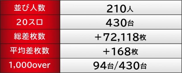 久しぶりの「ヒーローズレポート」は、総差枚数+72,118枚となり大勝利を収めた「スーパーD’ステーション上越店」。ブランクを感じさせないばかりか、圧倒的な実力を目の当たりにして、ファン諸氏は驚きを隠し切れなかったのではないだろうか。新潟県下にその名を大きく轟かせた同店だが、次回の「ヒーローズレポート」実施が待ち遠しい限りだ。ファン諸氏は同店の情報を逐一追ってもらい、チャンスをしっかりと掴みとってもらいたい!