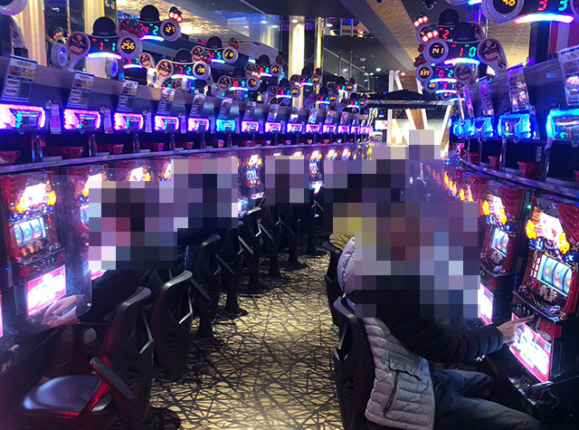 「マイジャグラーV」と「押忍!番長ZERO」をはじめ、さまざまな機種が楽しまれていた「メガガイア伊勢崎東」。