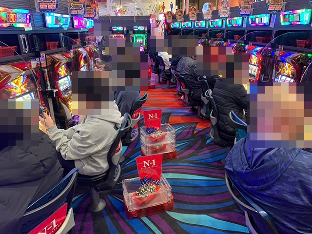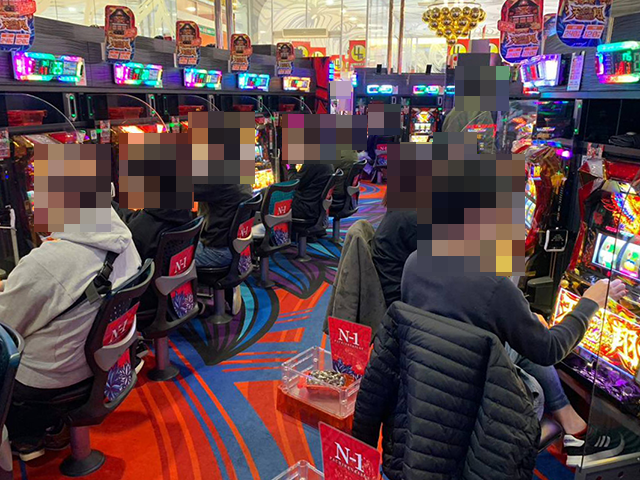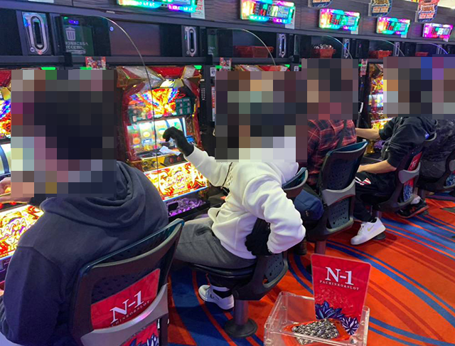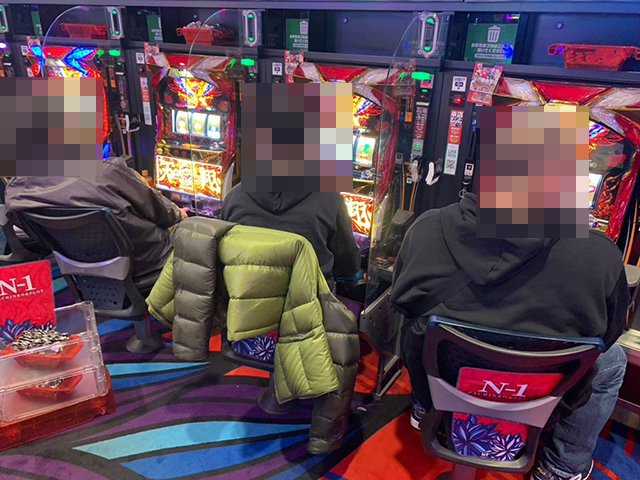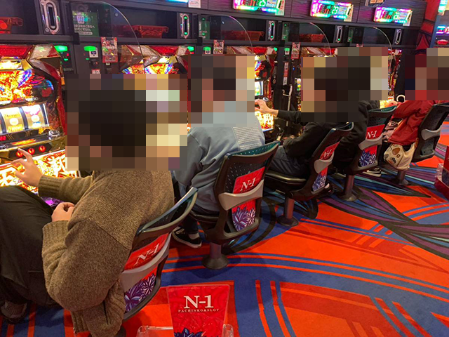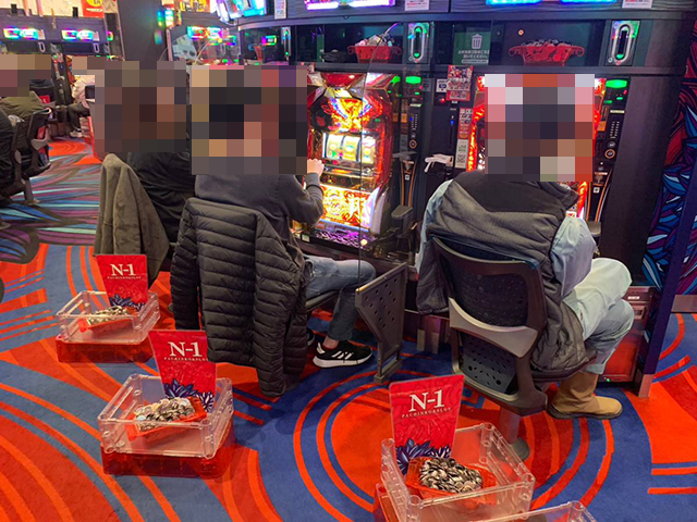 とくに存在感を放っていたのは、「ハナハナホウオウ~天翔~-30」で遊技を楽しむ姿だ。