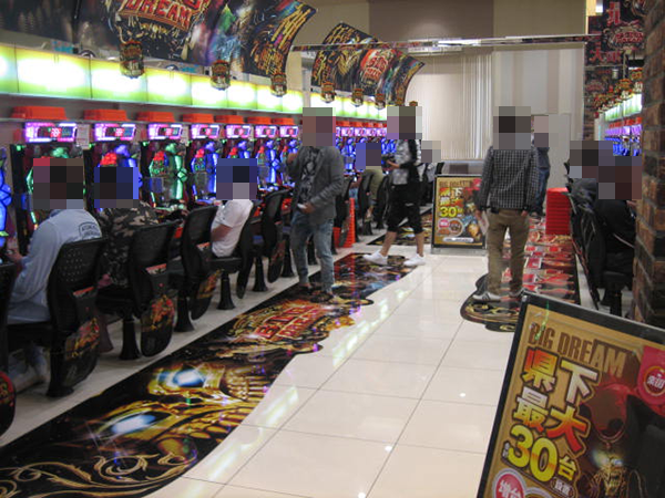 4円パチンコでは海物語シリーズや「CRビッグドリーム~神撃」、20円パチスロでは「沖ドキ!-30」や「ハナハナ鳳凰-30」が人気となっており、遊技をはじめる姿からは大きな期待感が伝わってきた。
