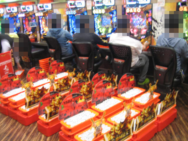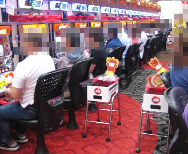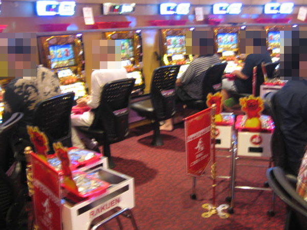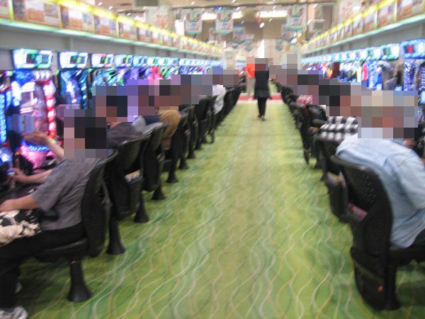 1円パチンコのコーナーも空席が少なく、たくさんの人でにぎわっていた。