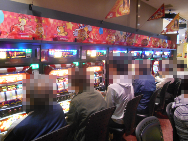 ホールに着いた暮の時間には、パチンコとパチスロのどちらも盛況。