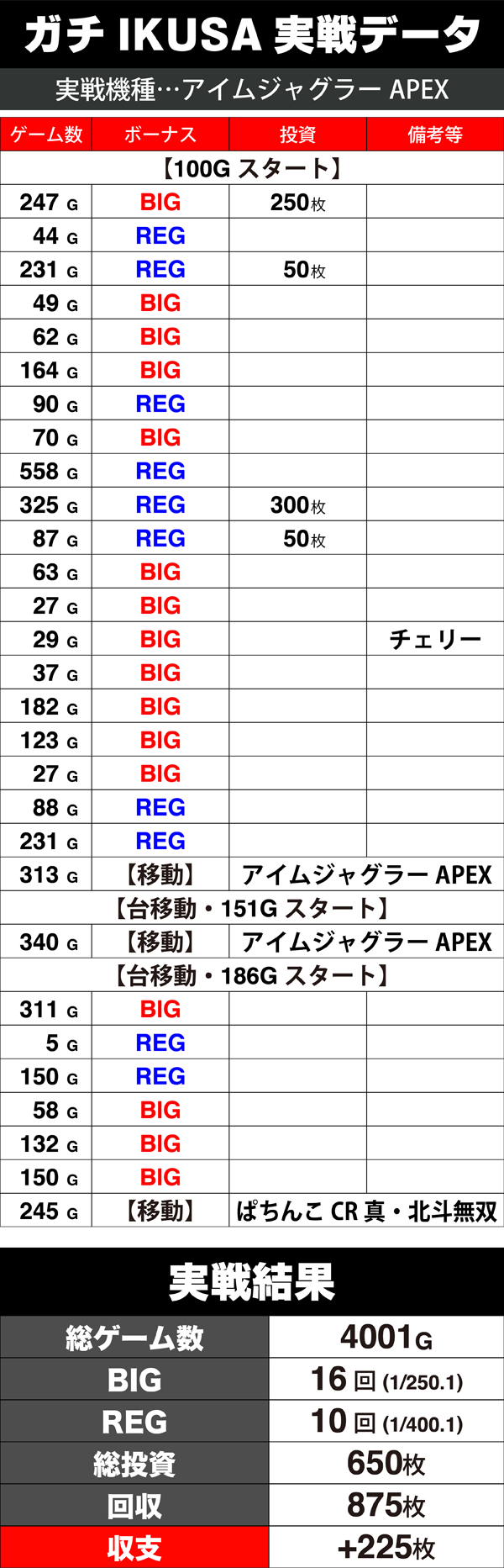 この日は合計で3台の「アイムジャグラーAPEX」を打ったが、どれも高設定と考えられただけに、移動は必要なかったのかもしれない。