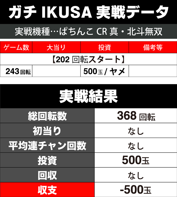 そんななかでも、とくに「ぱちんこCR真・北斗無双」が気になっていたのだが、満席であったためパチスロコーナーで実戦をはじめた。