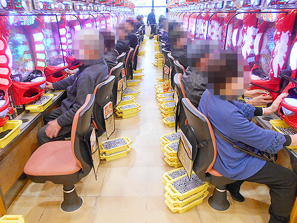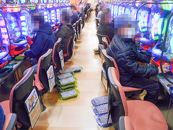 取材時は既に多くのプレイヤーであふれており、パチンコ・パチスロを問わず楽しげな表情でいっぱいだった。