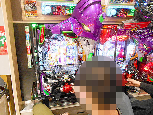 16時ごろの200円/89玉パチンコでは「新世紀エヴァンゲリオン〜未来への咆哮〜」や「Pゴジラ対エヴァンゲリオン〜G細胞覚醒〜」で好調なプレイヤーが見受けられ、時折見せる嬉しそうな表情が印象に残っている。