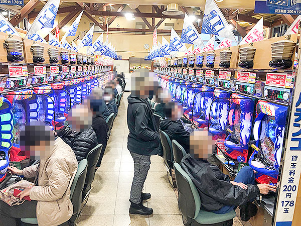 200円/89玉パチンコは機種を問わず高稼働。シマ全体が明るい雰囲気に包まれていた。