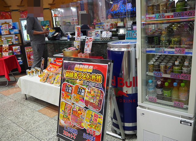 賞品コーナーをみると、鍋焼きうどんや鍋炊きちゃんぽんなどの食品が並んでいた。寒い季節だからこそ、手にとるプレイヤーも多そうだ。