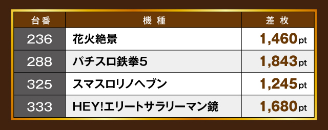 今回の「ウエスタン一之江店」は、前回に引き続き全国制圧と素晴らしい結果を残してくれた。毎回のように安定した好記録を残す「光ノ国」に+1,000枚オーバーを多数輩出した「爆ノ国」。さらに+2,000枚オーバーを記録した「漢ノ国」など、六国が互いに競い合った結果、連続での全国制圧を達成できたと思われる。今後、この記録がどこまで伸びるのか!? 取材班も期待しているぞ!!