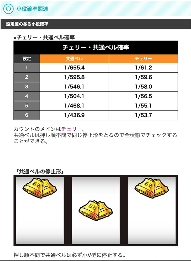 小役確率は共通ベルとチェリーに設定差があるため要カウント。