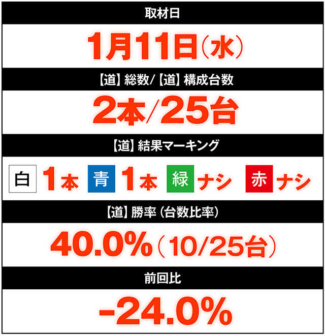前回12月11日、余裕で6割を上回る【道】勝率を叩き出すことに成功した「金馬車大津店」。