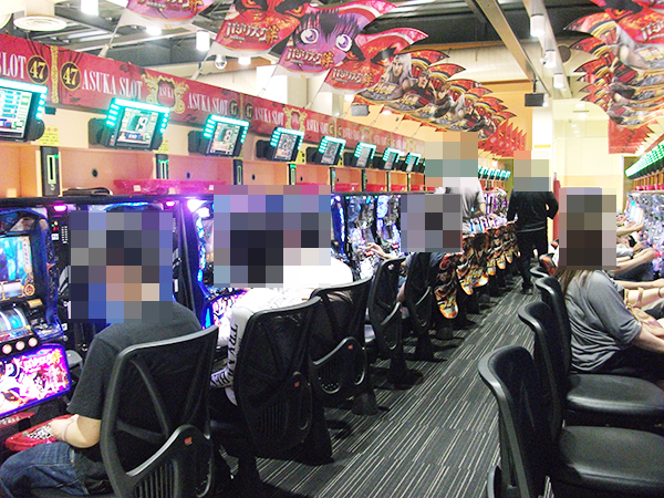 開店直後の1000円/47枚パチスロでは「沖ドキ!」やハナハナシリーズ、4円パチンコでは「CR大海物語3スペシャル」や「CR牙狼 魔戒ノ花」などに集まっているプレイヤーが多かった。