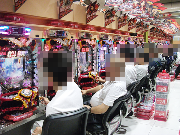 ミドルタイプの「ぱちんこCR真・北斗無双」や「CR大海物語3スペシャル」も活況。狙い通りといった表情を浮かべているプレイヤーもおり、活気に満ちあふれていた。