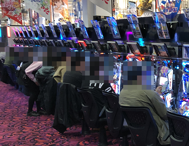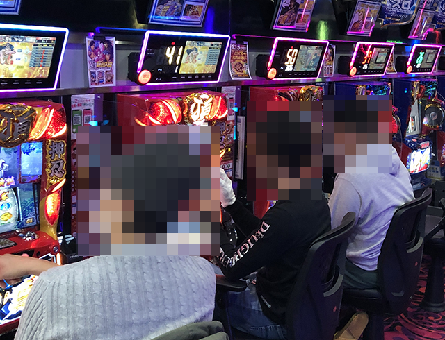394番台と395番台で遊技をおこなう姿がとくに楽しげで、1台が5,300pt以上でこの日を終えていたよ。