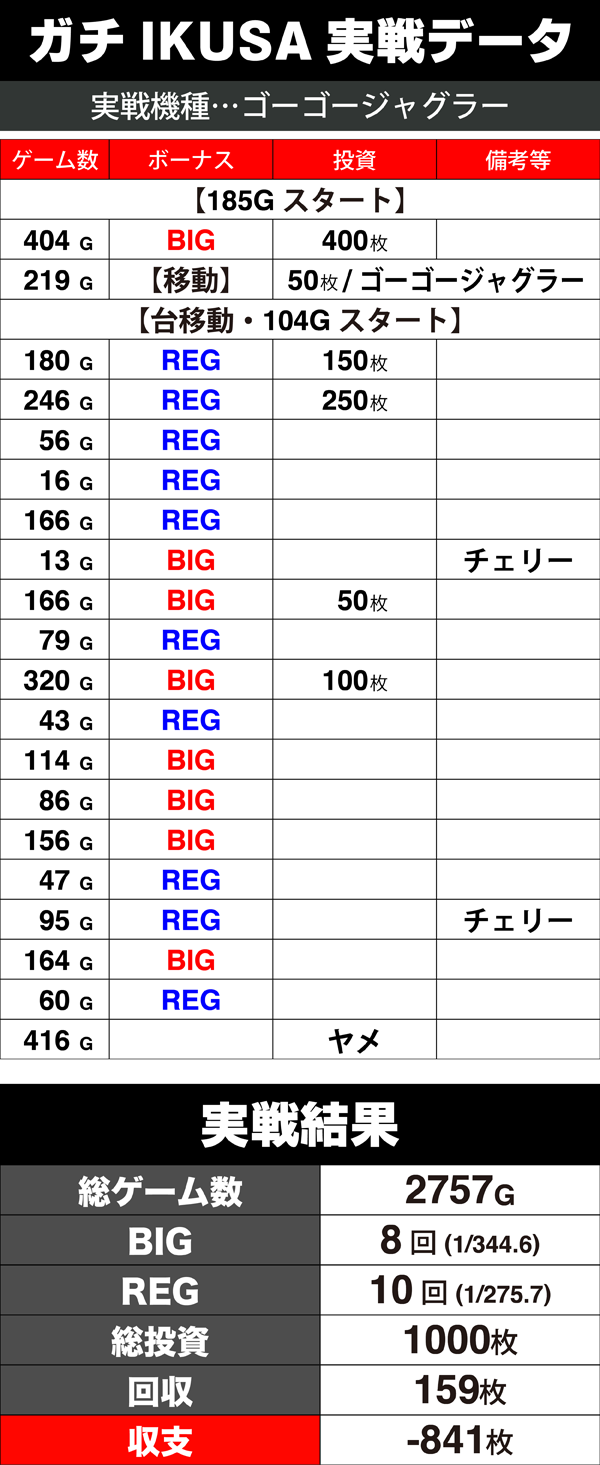 そのなかで設定がよさそうな「ゴーゴージャグラー」に出会った。この台で実戦をスタートだ!