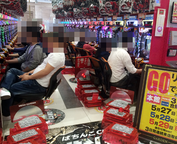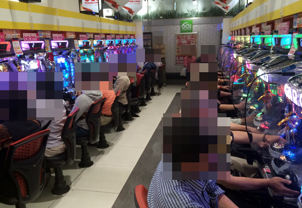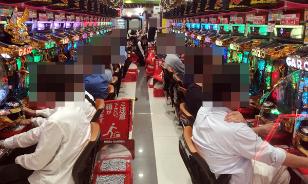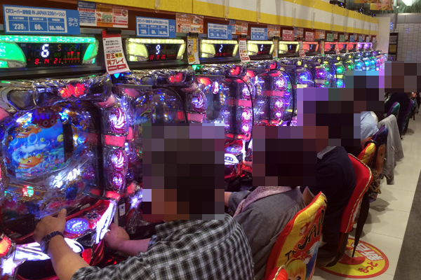 取材日は朝イチから開店待ちのプレイヤーが集合。開店直後はパチンココーナーが人気となっていた。