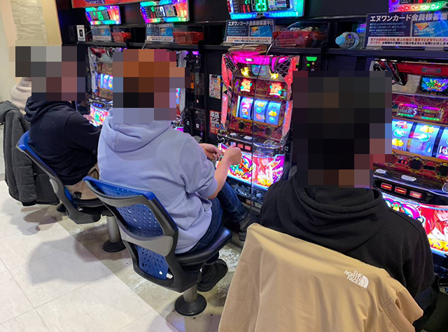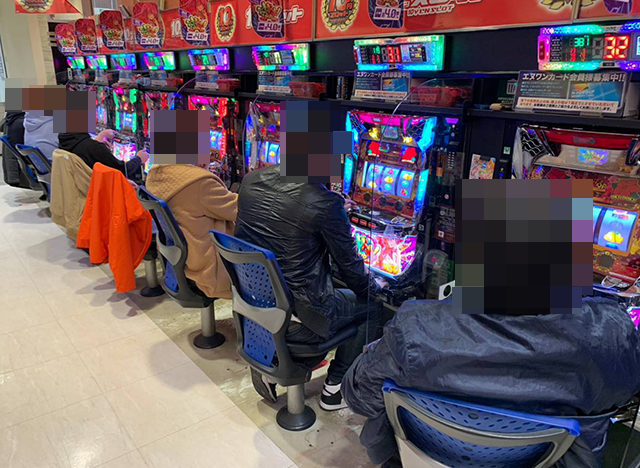 にぎやかな光景が広がり、パチスロコーナーのなかでとくに目立っていた。