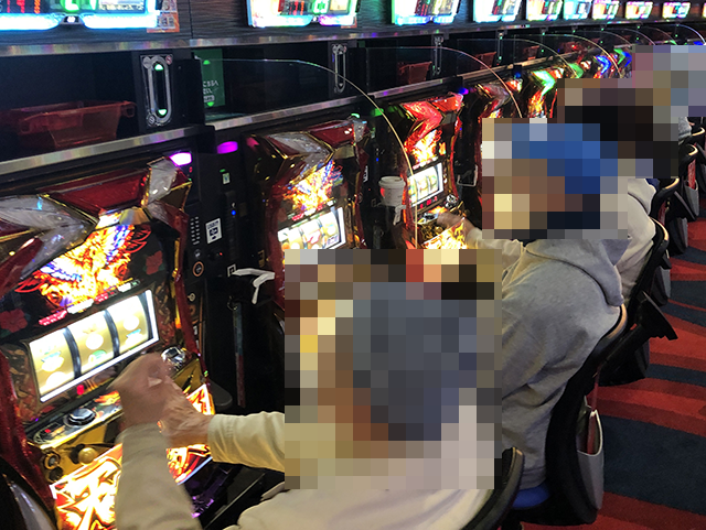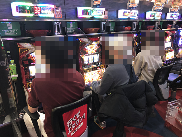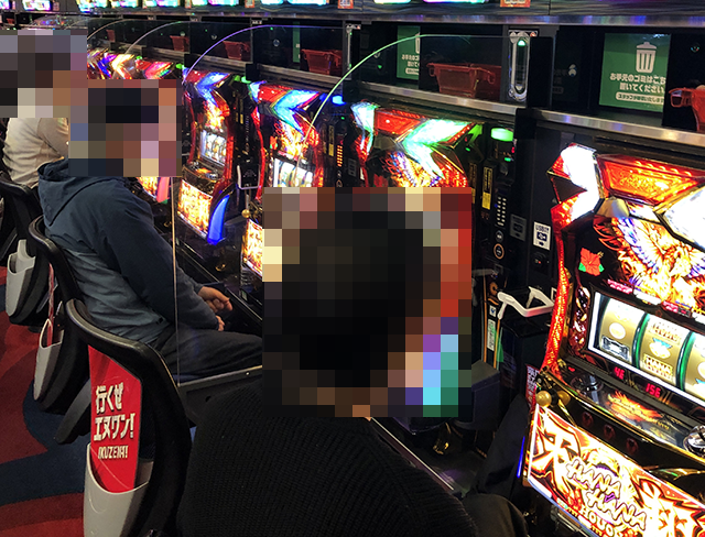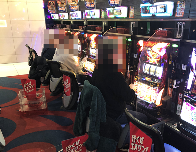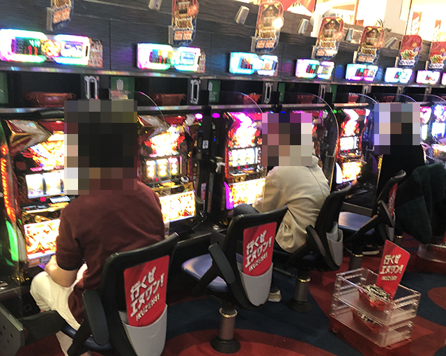 17時過ぎのパチスロコーナーでは、沖スロが人気を集めていた。