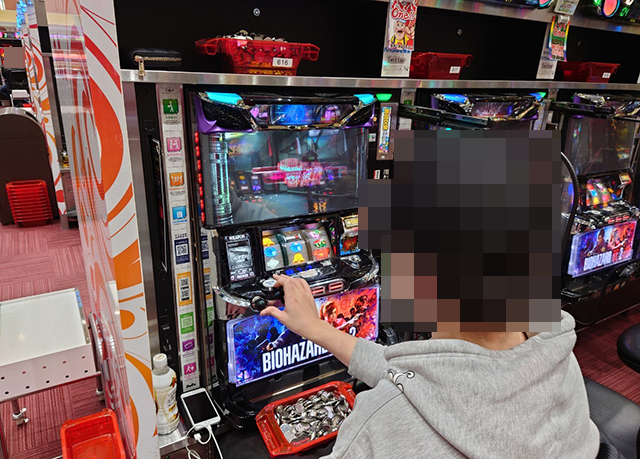 並びで設置された『パチスロ バイオハザード RE:2』と『パチスロ バイオハザード7 レジデント イービル』にも目をひかれた。