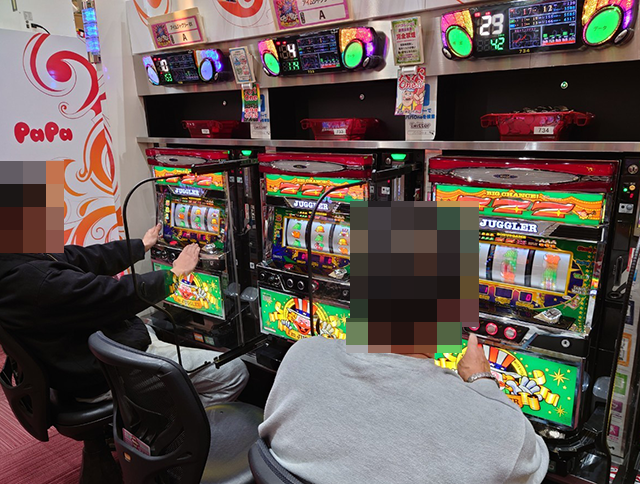 とくに楽しげであったのは、『アイムジャグラーEX』で遊技をおこなうプレイヤーだ。