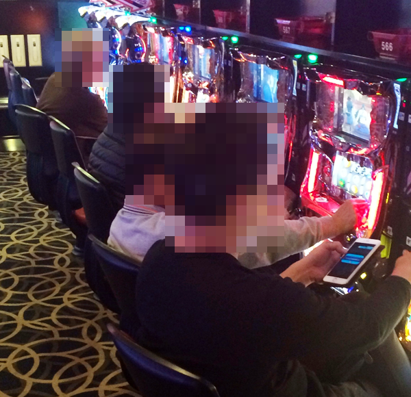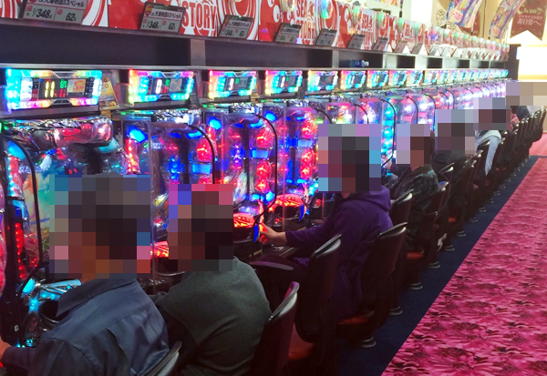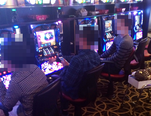 「アナザーゴッドハーデス」や「押忍!サラリーマン番長」、バラエティコーナーなどもにぎわっており、楽しそうな表情を浮かべるプレイヤーが多数。