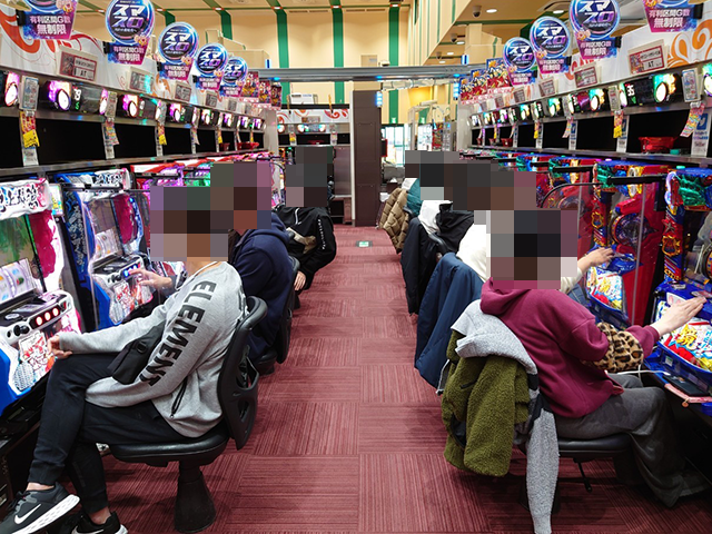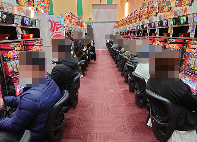夕方頃のパチスロでは、『HEY!エリートサラリーマン鏡』がとくに盛況。