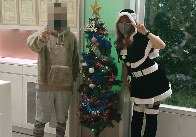 山崎ひびきもサンタクロースのコスプレで来店し、季節感のある空間をより華やかに彩っていた。