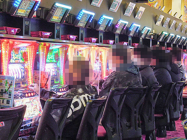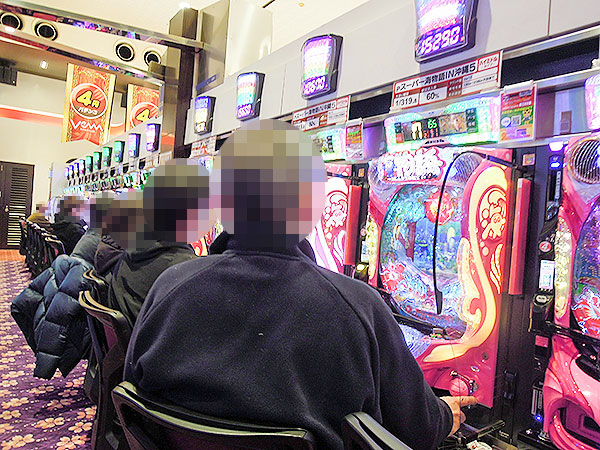 500円/89枚パチスロに目を移すと、楽しそうにレバーを叩くプレイヤーの姿が至る所で見られた。