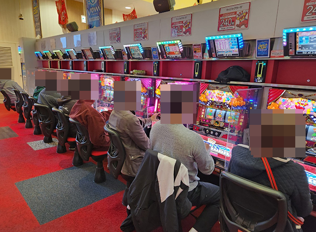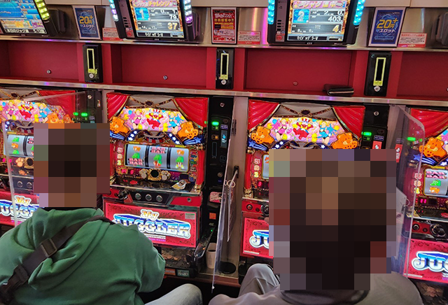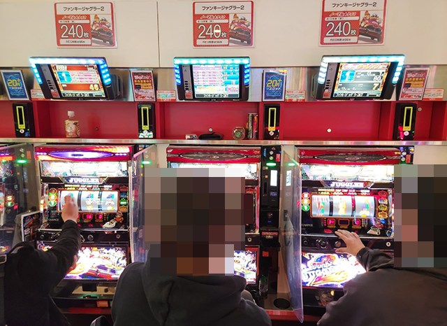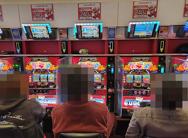 ジャグラーシリーズをみると、13台設置の『マイジャグラーV』の7割ほどが埋まっており、感じられる活気も大きい。