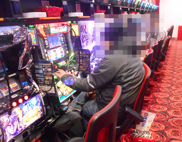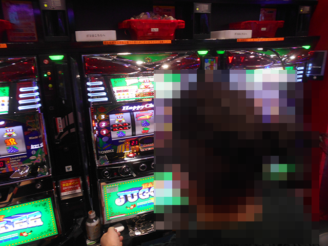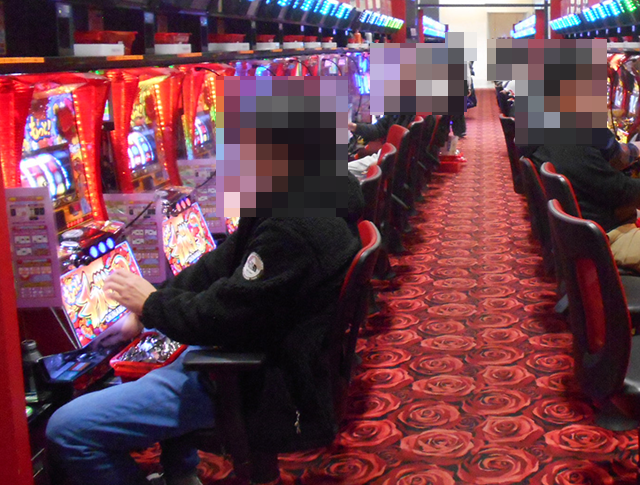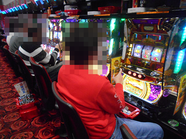 14時過ぎに各シマをみていくと、沖スロやジャグラーシリーズなどで、プレイヤーがうれしそうに遊技をおこなっていた。
