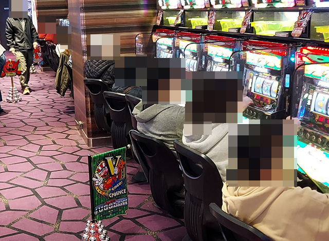 19台設置の『マイジャグラーV』は、ほぼ満席となるほどに好評。