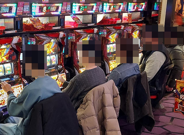 『アイムジャグラーEX』に対する支持も厚く、楽しげなプレイヤーがズラリと並んでいた。