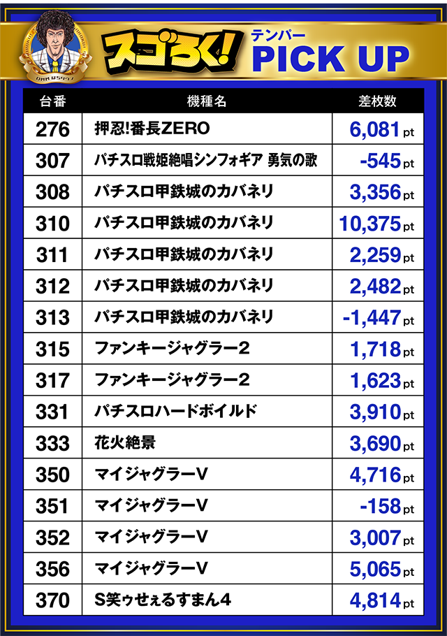 276番台の「押忍!番長ZERO」も注目をした台で、6,000pt以上とナイスな結果を残したぞ。