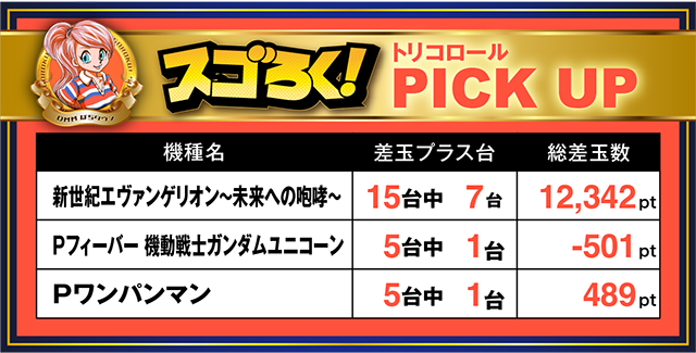 今回のリーダーは、『テンパー』&『トリコロール』! 優秀台とステキな機種を探してきてもらおう。