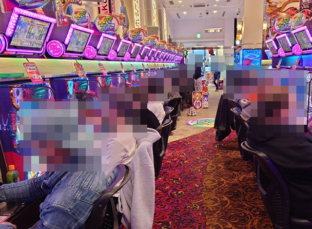 楽しそうに遊技をおこなう姿が並び、どの台も華やかなムードに包まれていた。