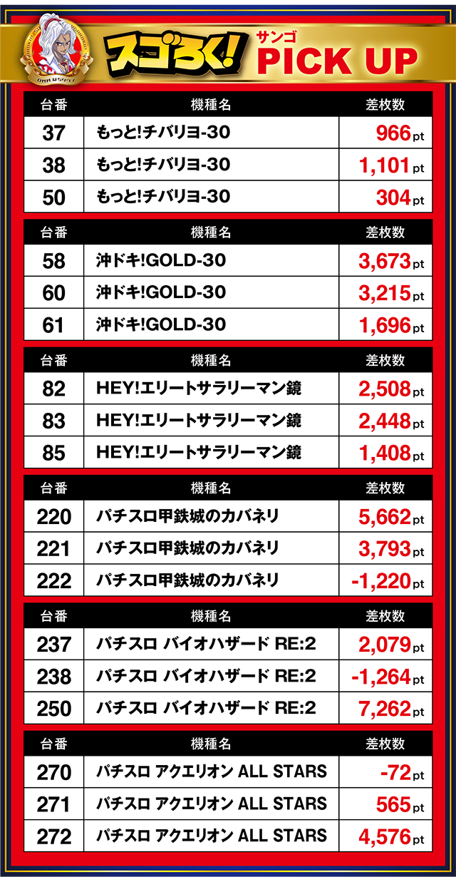 「パチスロ バイオハザード RE:2」でもプレイヤーは遊技を満喫できたようで、250番台は7,000ptオーバー!