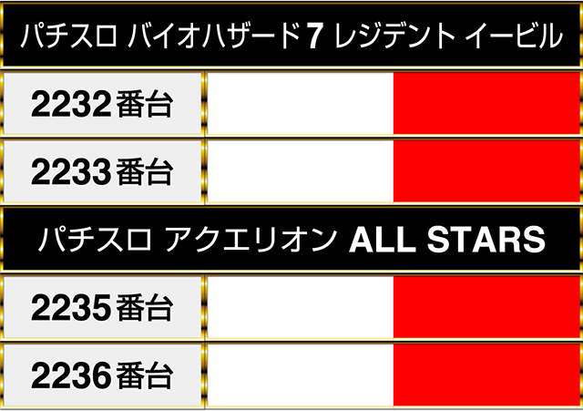 並びで設置されており、最終的には2232番台から2236番台までが連なってプラスptを記録!!