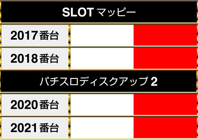 2機種を通してプラスptが並ぶ場所は、『SLOTマッピー』と『パチスロディスクアップ2』にもあった。