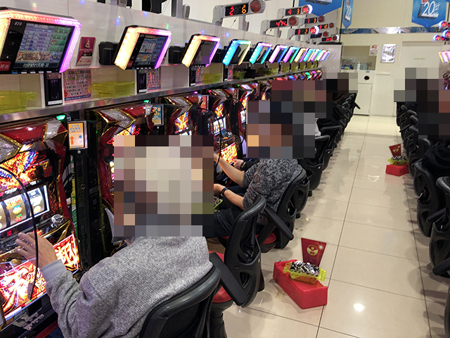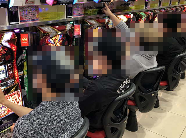 14時頃に店内をみてみると、パチンコとパチスロの両方で活気のある場面を目撃。