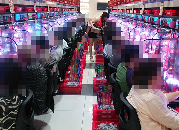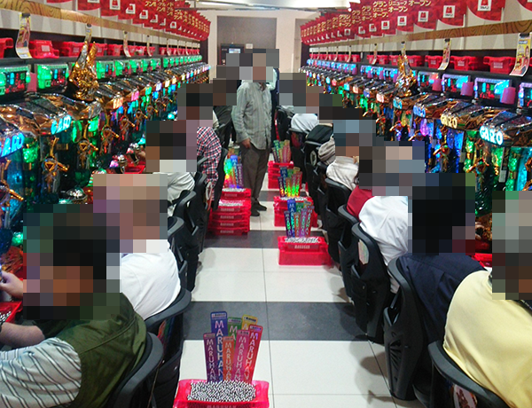 15時を過ぎた頃のパチンコをみてみると、4円パチンコの「ぱちんこCR真・北斗無双」や「CR牙狼 魔戒ノ花」に多くの人が集まっており、どちらの機種からも楽しさが伝わってくるようであった。