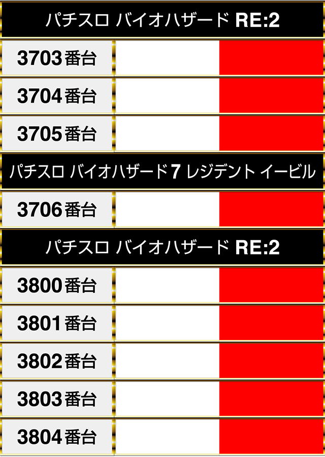 『パチスロ バイオハザード RE:2』の3800番台から3804番台までが並んでプラスptを記録!