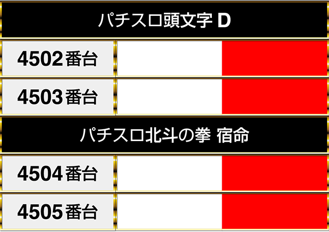 並びで設置されており、閉店時には4502番台から4505番台までが連なってプラスpt!!