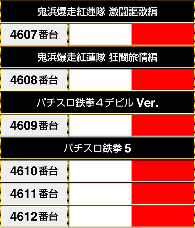 4607番台の『鬼浜爆走紅蓮隊 激闘謳歌編』から『パチスロ鉄拳5』の4612番台までにもプラスptが連なった。