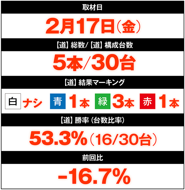前回2月7日ののヒーローズロードにおいて、【道】勝率70.0%をマークした「マルハン小山店」。