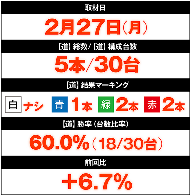 前回2月17日のヒーローズロードで、【道】勝率を16.7%もダウンさせてしまった「マルハン小山店」。