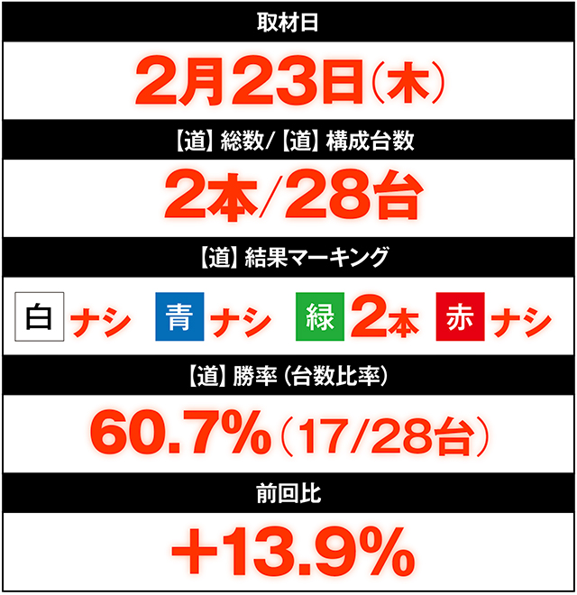 前回1月19日、【道】勝率を+5%アップさせることに成功した「金馬車北部店」。