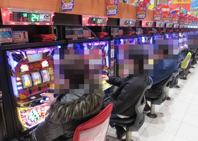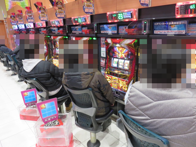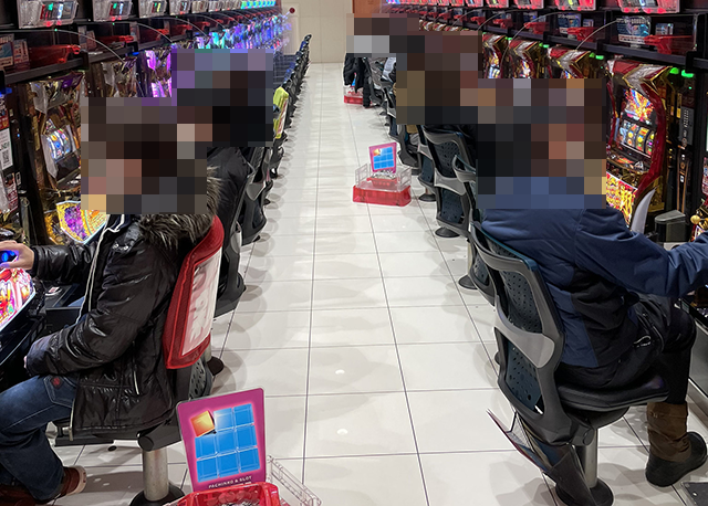 午後には3台が埋まっており、ボーナス回数が20回以上の台を確認。取材中にもボーナス回数を伸ばしていた。