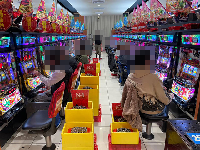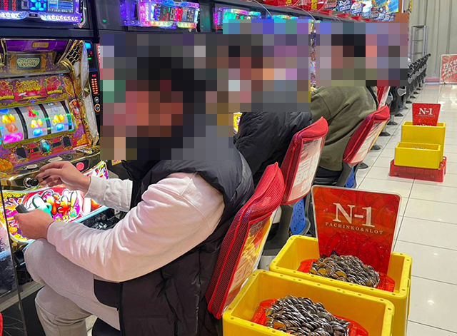 店内のさまざまな場所が盛況となっていた「エヌワン葛塚店」。機種を問わずに、心から遊技を楽しんでいるといった光景をたくさんみられた。